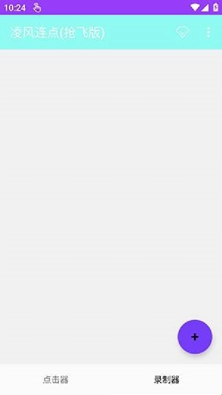 1.启动“凌风连点(抢飞版)”应用,进入主界面后,底部会呈现“点击器”与“录制器”两个功能选项,此时点击右下角的紫色“+”按钮,即可开始创建新的点击任务。
