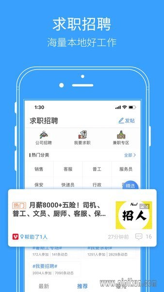 这是一个聚焦本地生活的城市社区平台,圈子里的内容都和你息息相关,能让你及时了解家乡的点滴变化与发展。求职招聘板块汇聚了大量本地优质岗位,总有适合你的机会,期待你的加入。