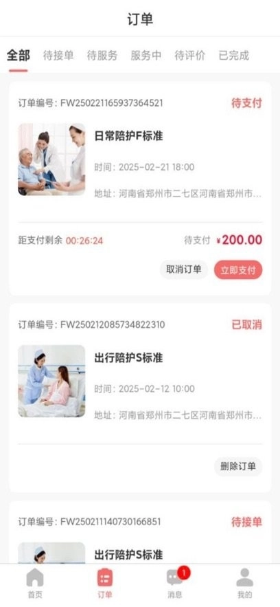 我们会根据您预约的订单,快速匹配符合要求的陪护人员,以此满足不同用户的需求。
