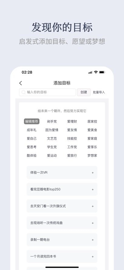 【发现你的目标】启发式添加目标、愿望、梦想…