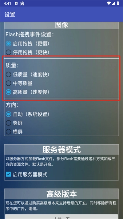 2、选播放质量,越高,需要配置越高,方向这里选择自动。