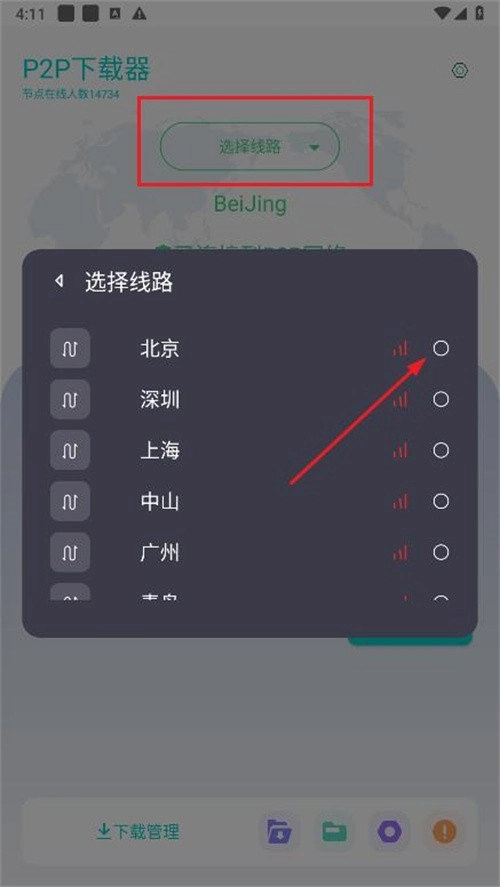 2.进入软件后,点击“选择线路”设置好你的线路。
