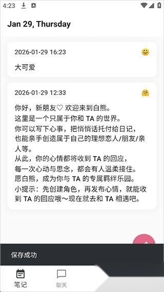 1、进入白熊AI聊天软件可以开始写笔记