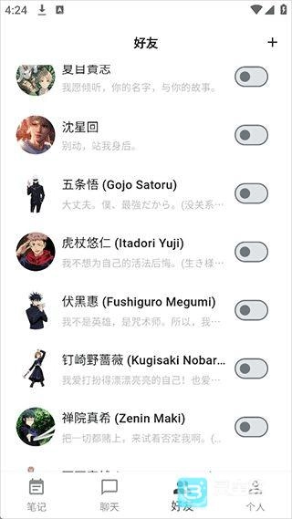 4、还了很多ai好友角色进行开启,与它们聊天