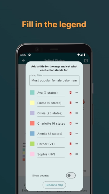mapchart是一款十分实用的地图创作工具,借助它能轻松制作地图,拥有较为完备的编辑工具,可满足不同用户的创作需求。此外,它还提供丰富的素材与工具,能实现地图的一比一还原创建,功能齐全且实用,支持免费使用,让你随时随地都能便捷地进行地图的创建与编辑。作为一款出色的地图模拟工具,它注重细节处理,支持一键保存和分享,方便你随时将作品分享给好友。