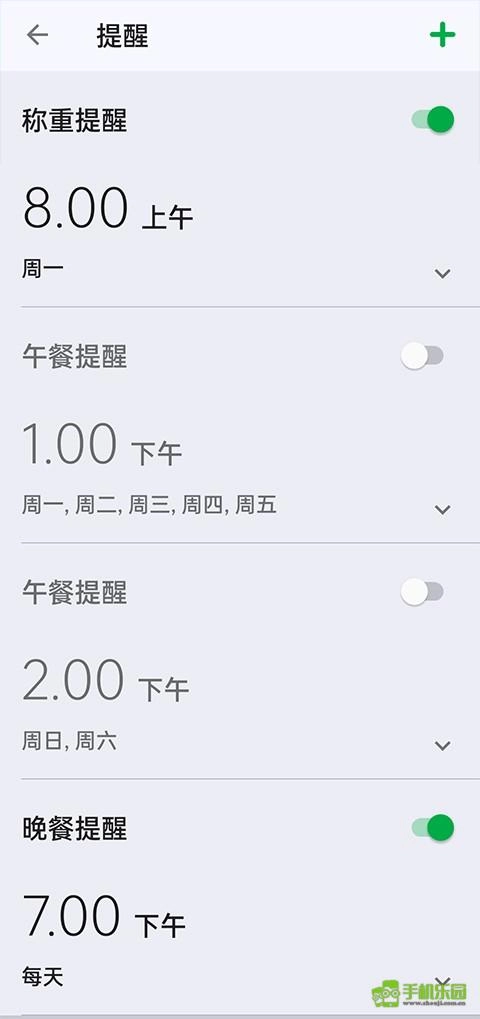 7、设置称重、早、午、晚餐提醒时间;
