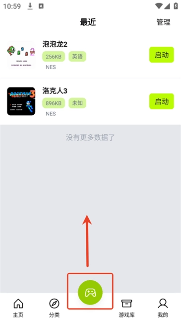 4、在软件主页面点击中间绿色的手柄图标可看到历史游玩记录