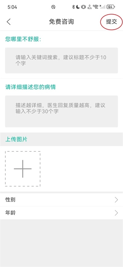 4、进入"免费咨询"页面,根据下方要求填写内容,最后点击右上方提交即可。