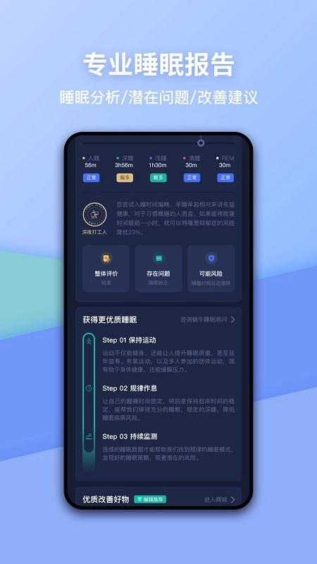 1、记录你的梦话与呼噜,分析睡眠状态,生成专属睡眠分析报告。
