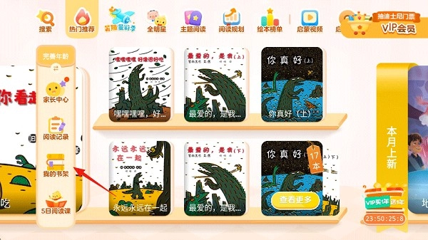 2、在书架中点击可以免费的绘本。