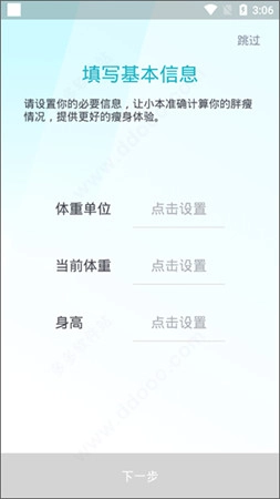 首次使用体重小本进行运行操作时,系统会提示你填写当前的体重与身高信息。