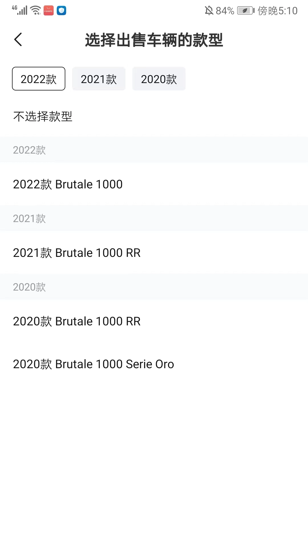 5、接着选择出售车辆的年代款,