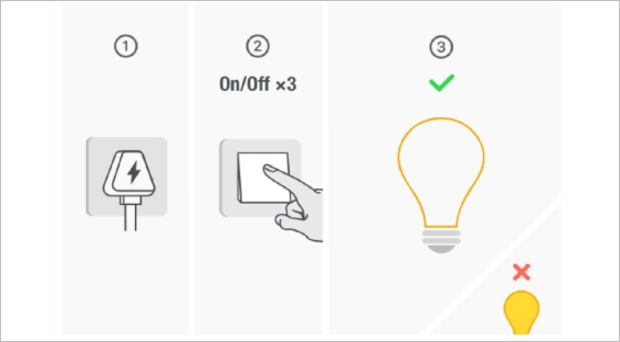 照明设备可反复开关3次。其他设备可长按复位键5秒。指示灯闪烁表示设备已进入配网模式。