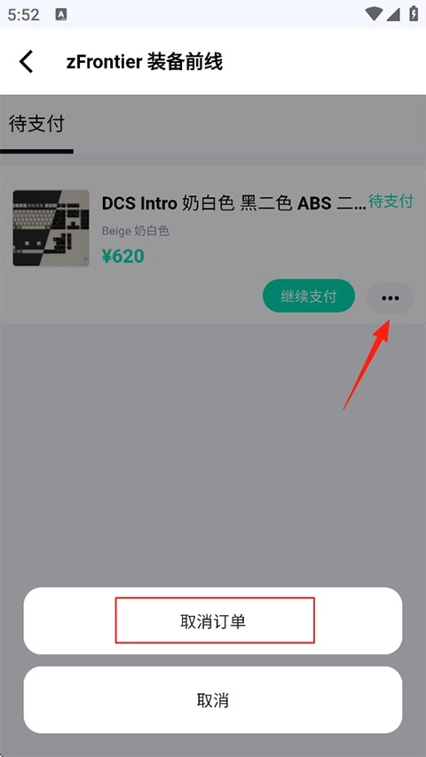 2、进入订单页后点击需要取消的订单右下角的扩展按钮,在弹出的列表中点击取消订单;