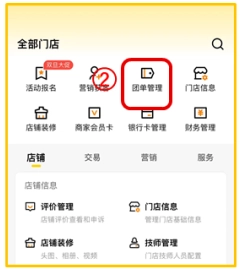 1. 登录商家后台后,点击【功能】选项,接着选择【团单管理】