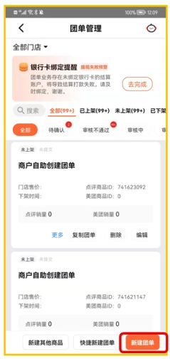 2.在【团单管理】页面点击【新建团单】,完成商品信息编辑。