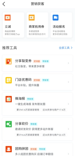- 营销获客:多样的营销工具和组合玩法,助力高效获客。