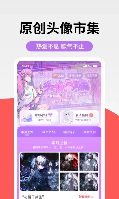 - 丰富做图素材,提供壁纸锁屏、头像装扮、背景配图。