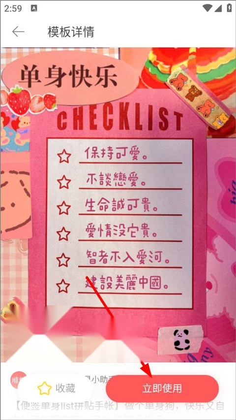 4、打开模板,可以收藏查看模板简介,点击右下角立即使用;
