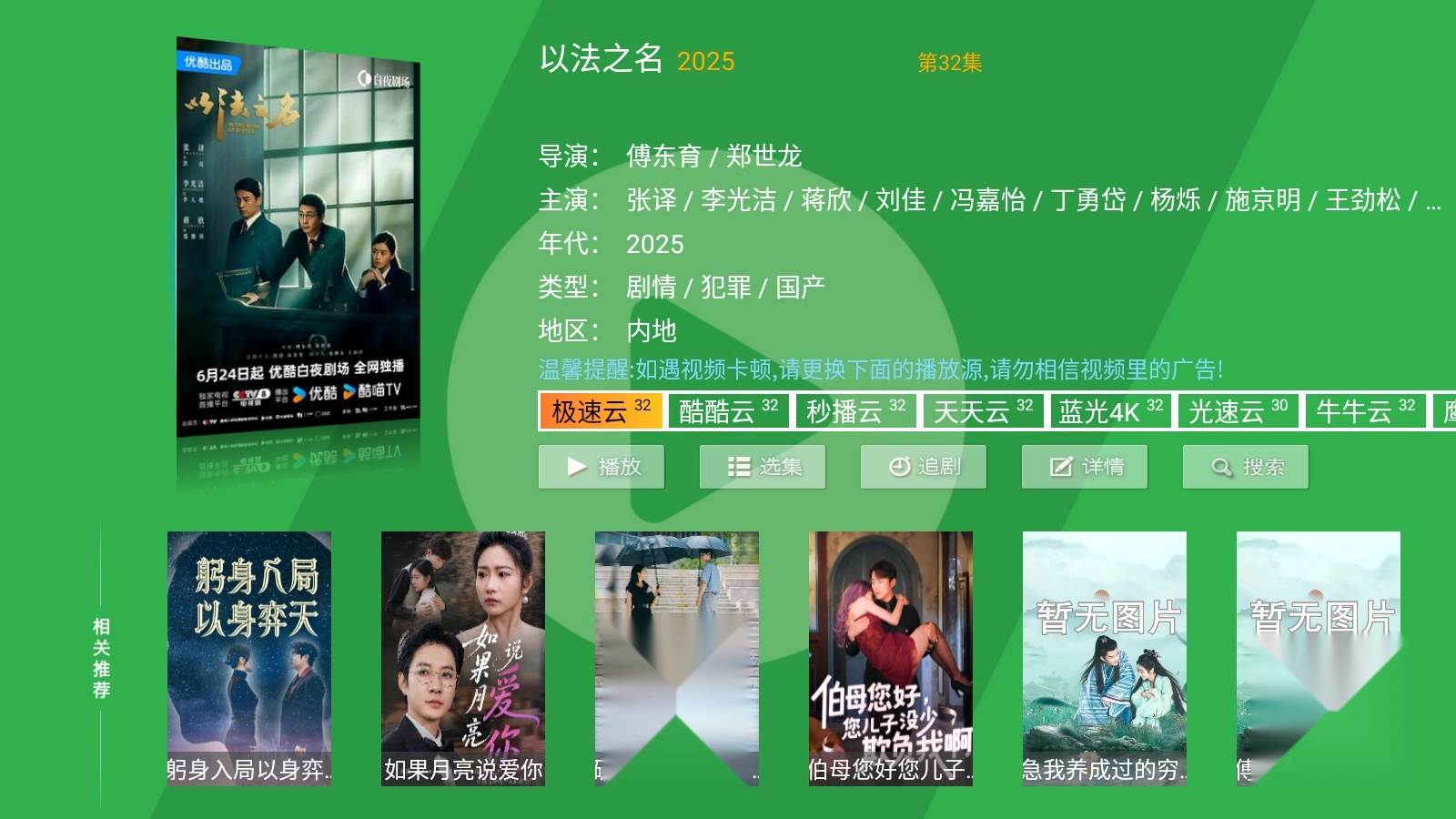 青苹果影视是一款专为智能电视大屏幕打造的影视盒子软件,能让我们观看各类精彩的影视内容。无论是当下热门剧集《以法之名》,还是经典大片《钢铁侠》系列,在青苹果影视里都能找到资源并在线观看。它的用户界面十分简洁,为了呵护用户双眼,特意采用绿色作为背景色,有助于缓解眼部疲劳。而且青苹果影视TV完全没有广告,只为让大家拥有完美的观影体验,值得一试!