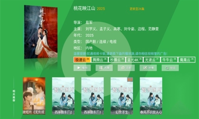2、随意选择一部剧集,例如点击《桃花映江山》即可开始播放。