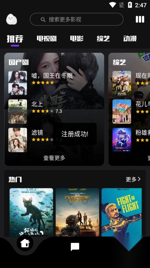 1、用户在首页浏览热门影视内容时,应用会依据其兴趣偏好推荐电影、电视剧、动漫等不同类型的作品。