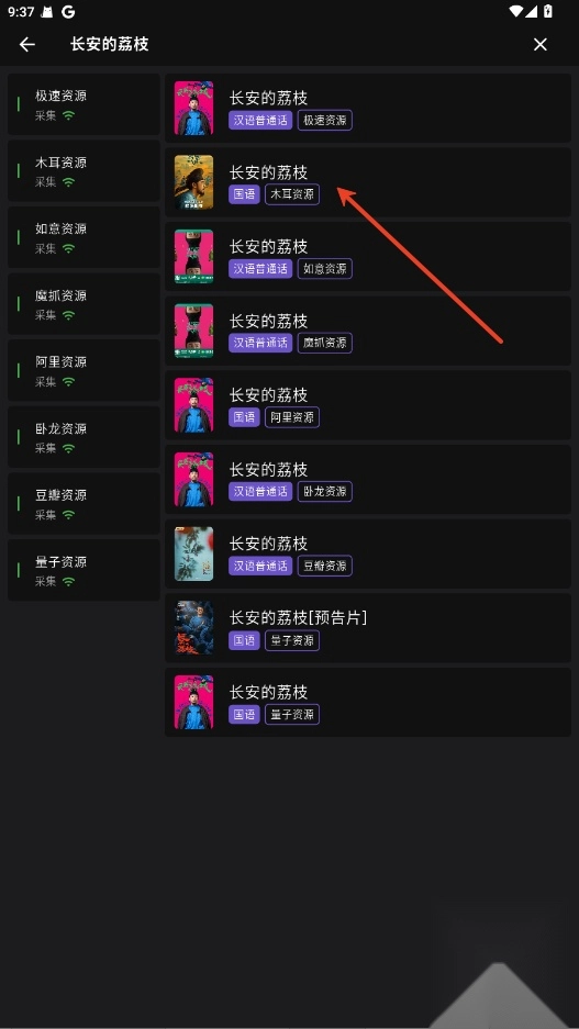 3、选择一部影视剧后,点击封面,进入播放源选择页面,点击源观看内容。