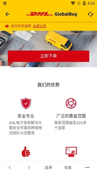 5、在DHL集运界面可以立下下单进行运货;