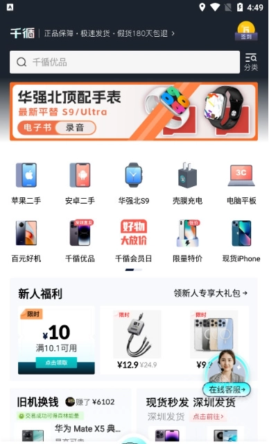 除了二手机外,还拥有丰富的种类产品,包含有新机、平板电脑、笔记本电脑等应有尽有,全方位满足用户的使用需求。