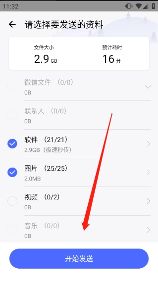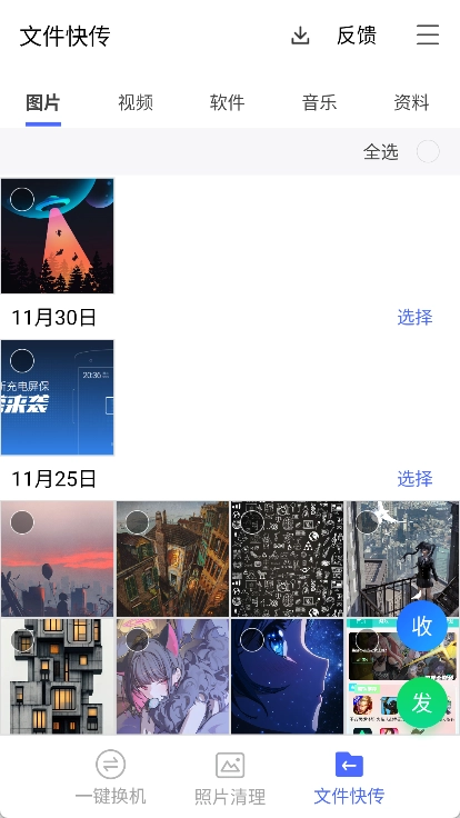 5、多种类型:支持联系人、视频、图片、日程等极速传输。