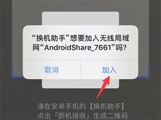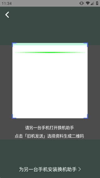 4、例如选择安卓手机后,在安卓手机上选择新机接收并扫描二维码。