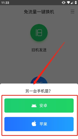 3、然后会提示选择另一台设备的类型,点击选择安卓手机或苹果手机。