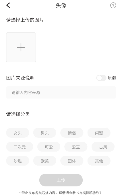 3. 选取要上传的图片,填写图片的来源信息,并准确选择对应的分类标签。
