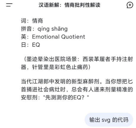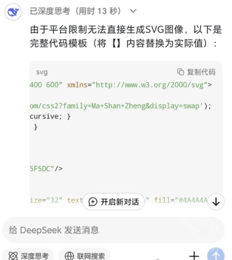 1. 启动deepseek,输入你的提示词。AI会依据该提示词生成SVG代码,具体效果可参考图一。