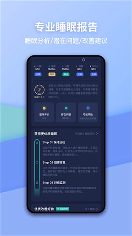 2、作为睡眠健康领域的贴心伴侣应用,蜗牛睡眠将陪伴你度过每一个美好的夜晚睡眠时间,助力你养成良好的睡眠习惯,精准感知并详细记录你的睡眠过程,为你生成直观的可视化睡眠报告,帮助你更深入地了解自身的睡眠状况。