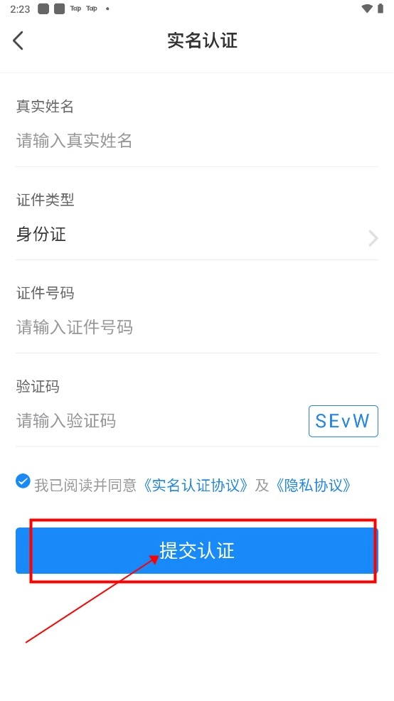 4、以“实名认证”为例,填写身份信息,点击“提交认证”即可