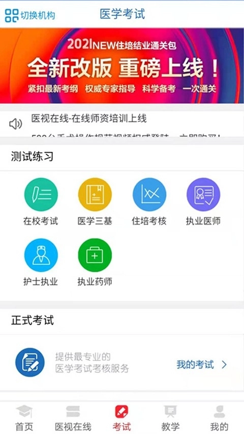 为机构用户提供组卷、试题审校、模拟考试、成绩统计、结果评价、考务管理一体化的医学考试解决方案。