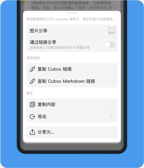 生成 Cubox 链接分享已解析排版的文章,包含个人标注、见解,可随时停止/恢复分享。