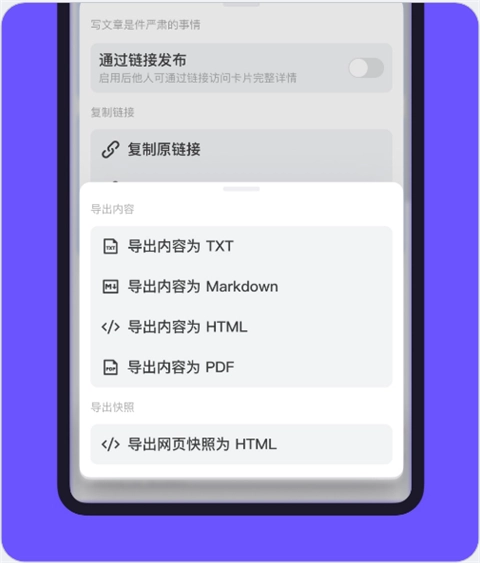 将收藏或标注导出为 Markdown,HTML,PDF 格式文件 (支持批量导出) ,方便导入其它工具。