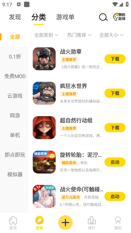 1.包含角色扮演、挑战、对抗、纸牌、街机、休闲、模拟、赛车等各类游戏类型。