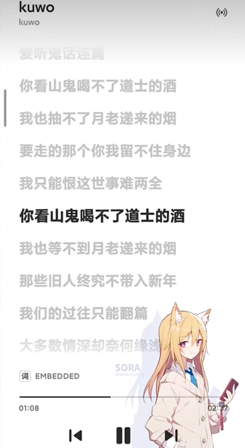 5、完成上述步骤后,返回SaltPlayer并播放你刚刚编辑的歌曲。此时,你应该能够看到已成功导入的歌词。