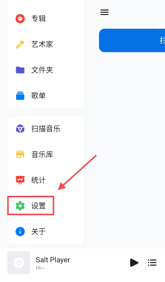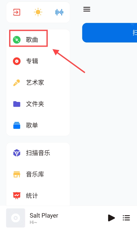1、进入SaltPlayer,点击左上角三条杠按钮,打开系统菜单