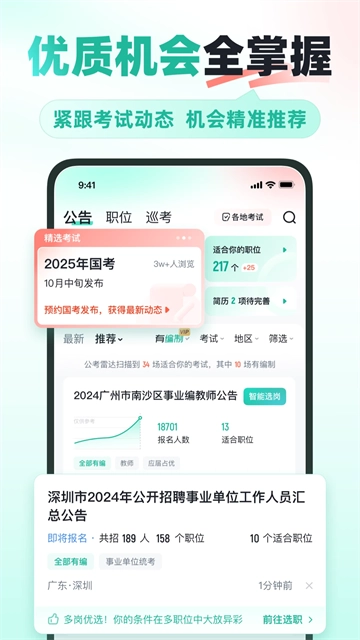 2、全国公考信息一网打尽,一分钟快速筛选;