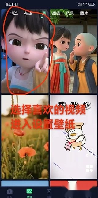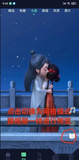 5、如果你想像在相册里面选视频一样选壁纸,你就可以切换为网格模式;