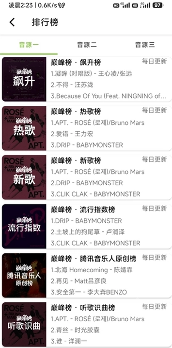 5、智能推荐与榜单:软件具备智能推荐功能,同时精心打造数十个潮流榜单,帮助用户发现新音乐。