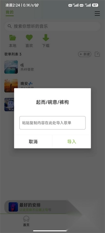4、个性化设置:用户可以在设置中选择在线听歌的音质,支持无损模式,并可从其他平台导入歌单,满足个性化需求。