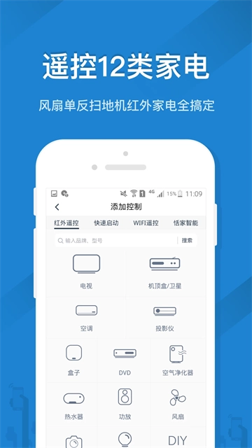 3、可遥控12类家电,涵盖风扇、单反、扫地机等,各类红外家电都能轻松操控