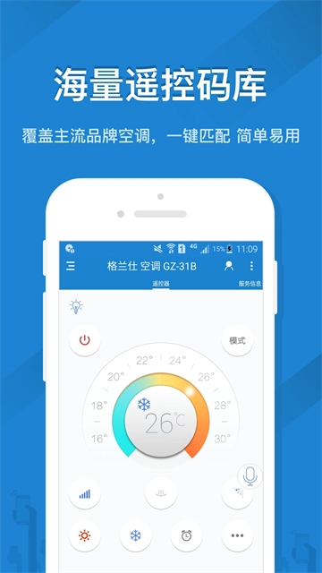 1、海量遥控码库,覆盖主流品牌空调,一键匹配,简单易用