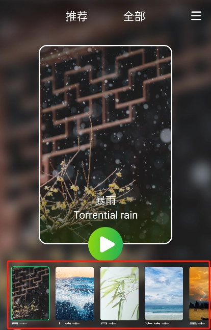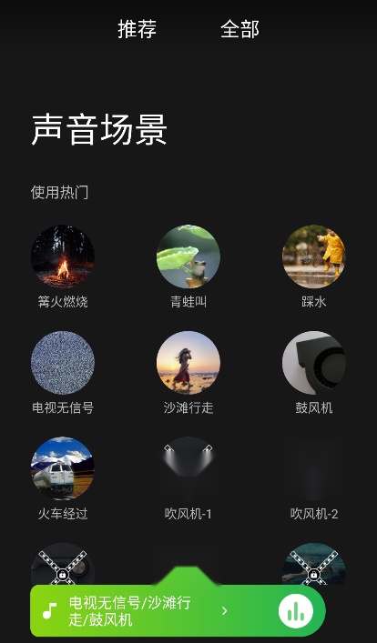 6、配备30余种背景音频,涵盖海滩浪声、溪水流动、雷雨、风声、蛙鸣、鸟鸣等多种类型。