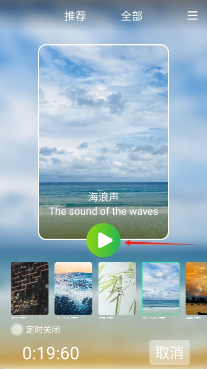 4. 点击播放按钮,聆听白噪音,帮助放松和入睡。